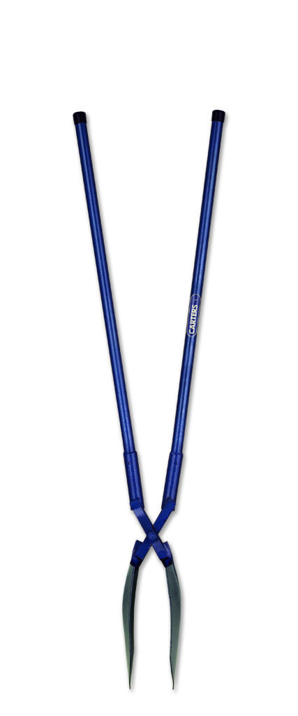 - Scissor action Post Hole Shov-Holer used for clearing rubble and soil from post holes.