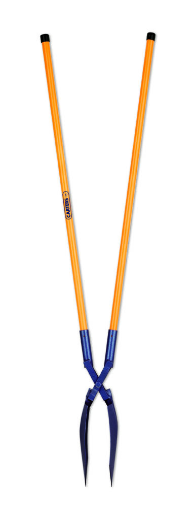 - Scissor action post holer for clearing rubble and soil from post holes.